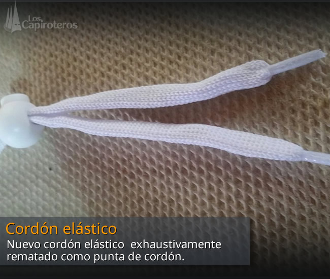 Nuevo cordón elástico exhaustivamente rematado como punta de cordón.