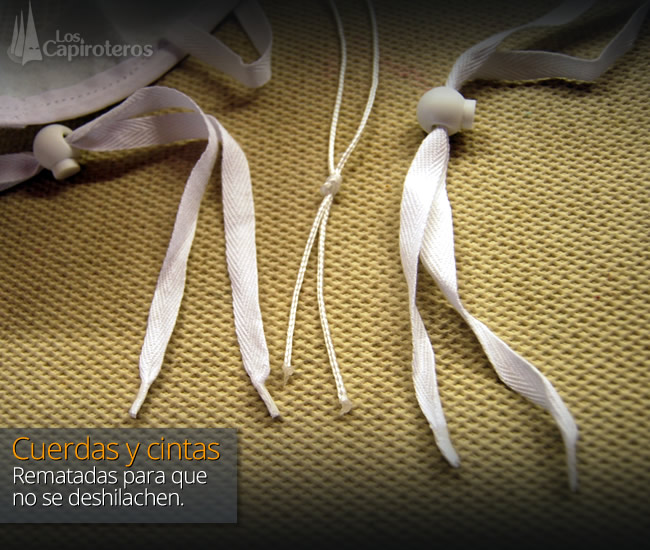 La cuerda que permite cerrar y ajustar el gorrito, está sellada en sus extremos, para evitar que se deshilache.
